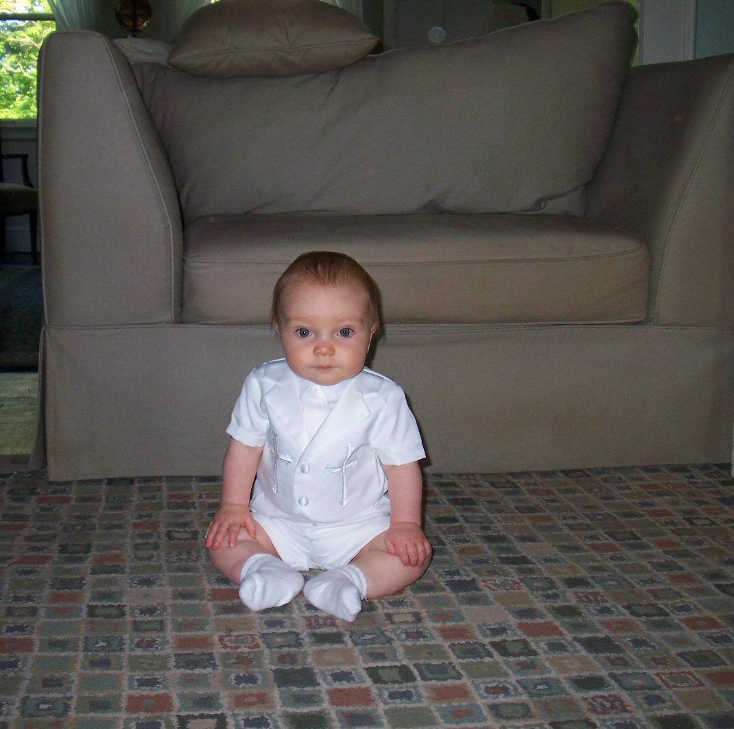 This was taken right before we left for church to get Logan Baptized (5.25.08). We were at my Dad’s house because we wanted him to be Baptized in the church I grew up in, Mike and I got married in, and the twins were Baptized in. Plus, we love the minister 🙂 (He happens to be my Dad’s best friend, and my best friend’s Dad!)