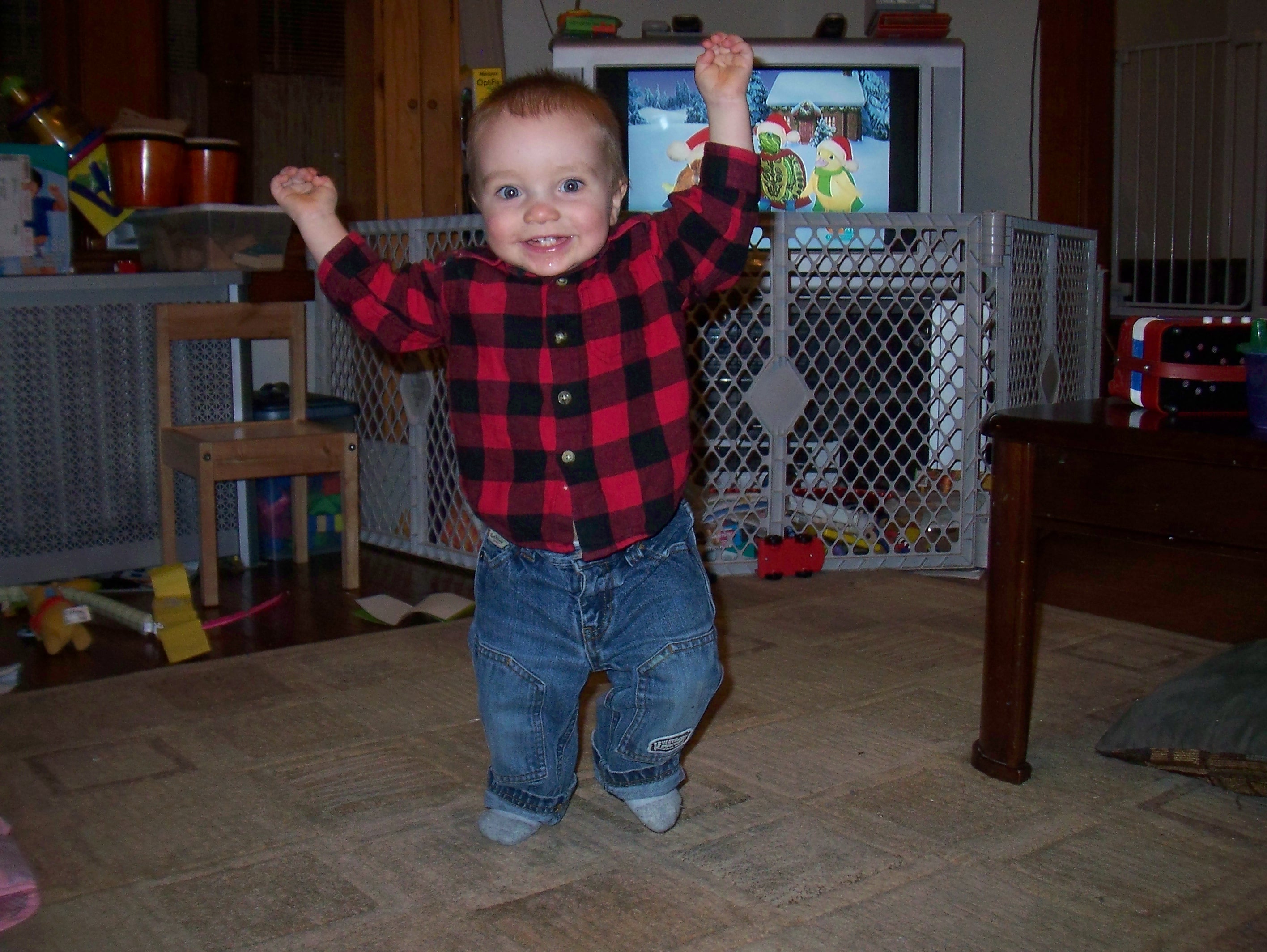 And the video to match! He’s walking, waving and saying “byeeee!”, and saying “Cheese!” – all of his tricks lately 😉