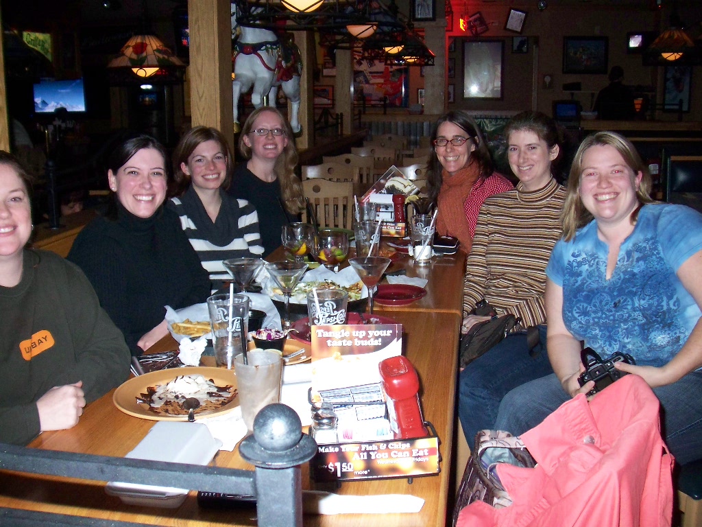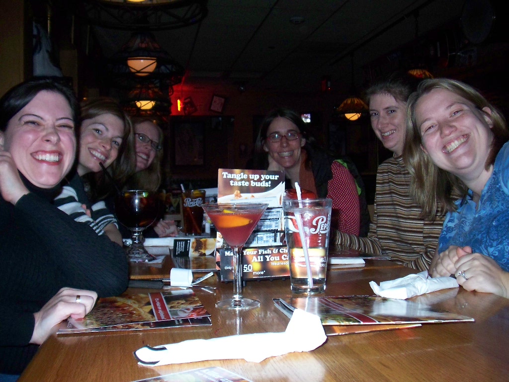 I met up with Goddess in Progress, Rhonda, Mommy, Esq., Snickollet, Sotoriffic Twins, and What A Card last night for some drinks. What a blast we had! I had met everyone before (Snick only in passing), but it was so great to get us all together and just….talk and talk and talk. Since we all read each other’s blogs, we pretty much all “know” what’s going on – so it was like old friends meeting for a monthly (or even weekly) drink! I certainly hope we do it again π