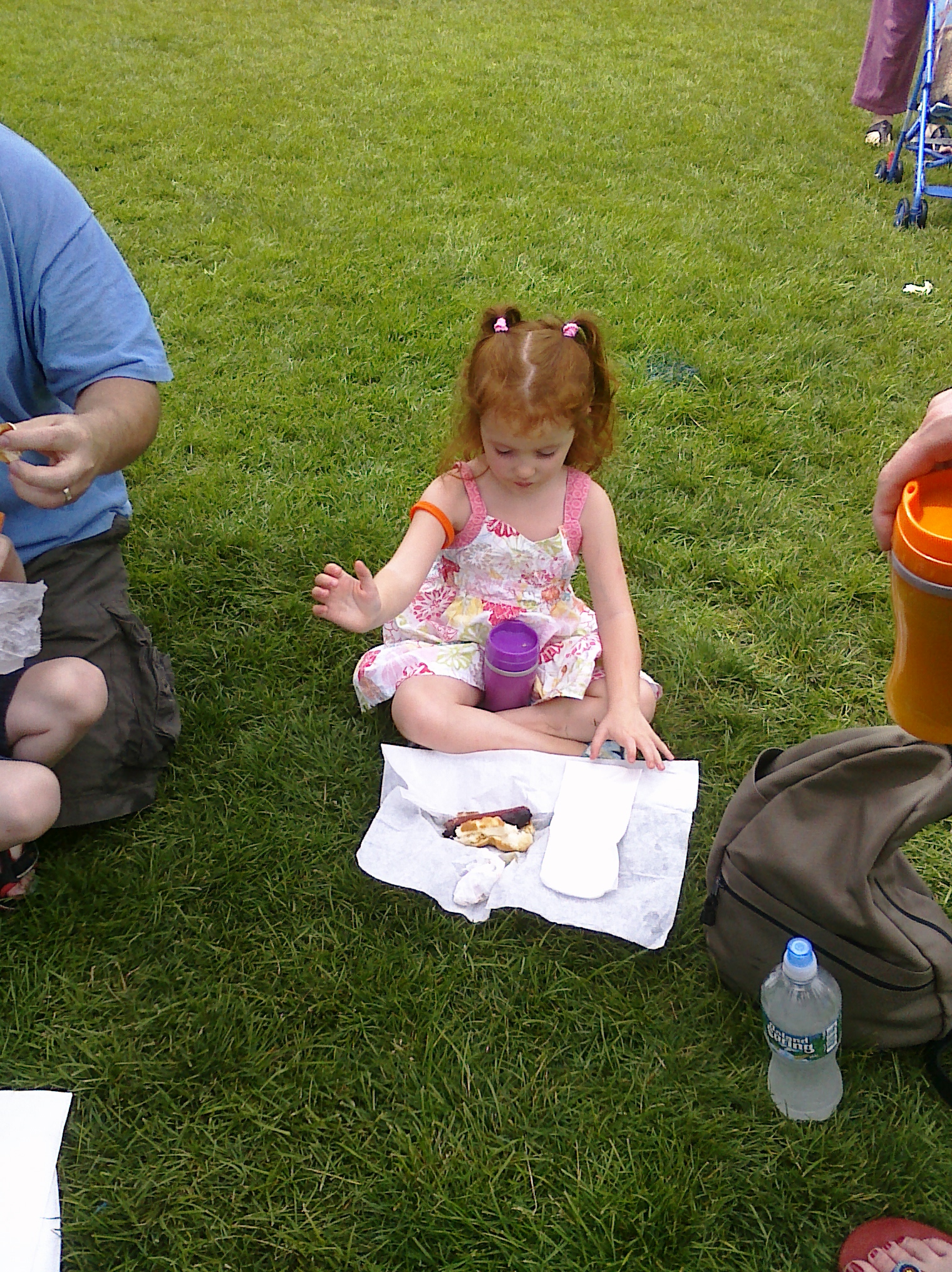 Anyway … Since we’re almost never without juice when we go places, I have various pictures of the kids with varying types of cups. We use the Take -n- Toss (of course!) – both sippy and straw – but our favorite ones are the Playtex Coolsters. They don’t leak!!! My brother-in-law picks on them because they look like the kids are carrying around travel coffee mugs, but I don’t care. 🙂