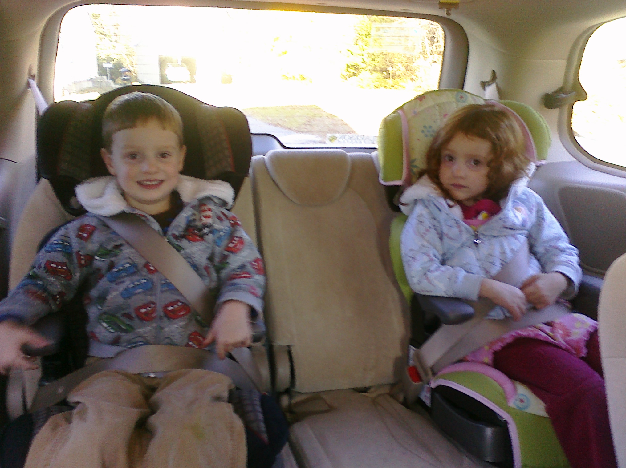 We finally figured out that the twins should probably get out of their car seats and into booster seats. The push? I couldn’t snap the belts over their winter coats. . . otherwise, they’d probably still be in the old ones. (Bad mommy!) I don’t think any of us realized how much more comfortable they would be in these…mostly because none of us (including the kids) really realized that they were uncomfortable in the first place.