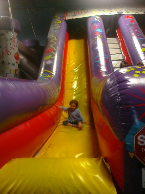 Maggie was invited to a birthday party today (a friend from dance class). It took her a while to gather up the courage to go down this slide…she was so proud of herself for doing it!