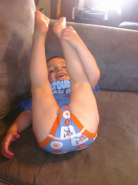 Logan is in (Mickey Mouse) undies…for the first time ever!