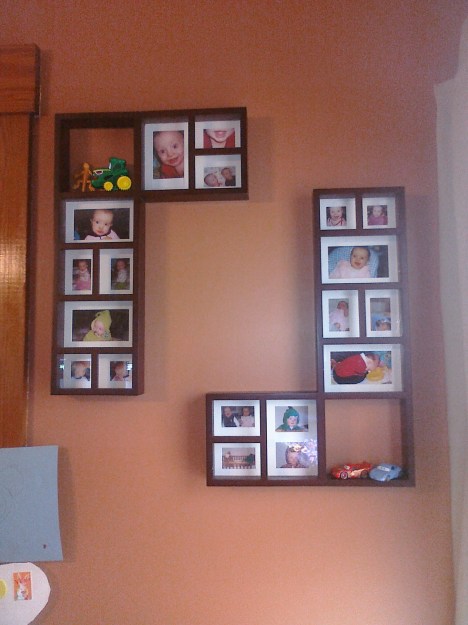 Yeasterday, Mike put up some shadow box picture frames that never made it onto the walls when we moved (3 years ago…).