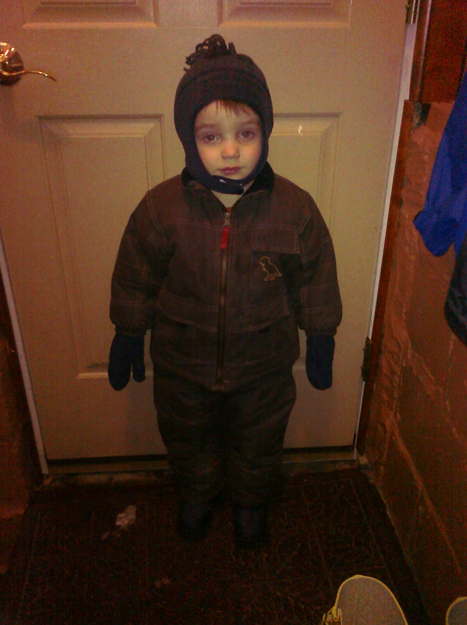 Logan is home from school today (his fever didn’t break until early this morning…hoping it’s gone for good!!), but that’s not keeping him from playing out in the first snow of the year!