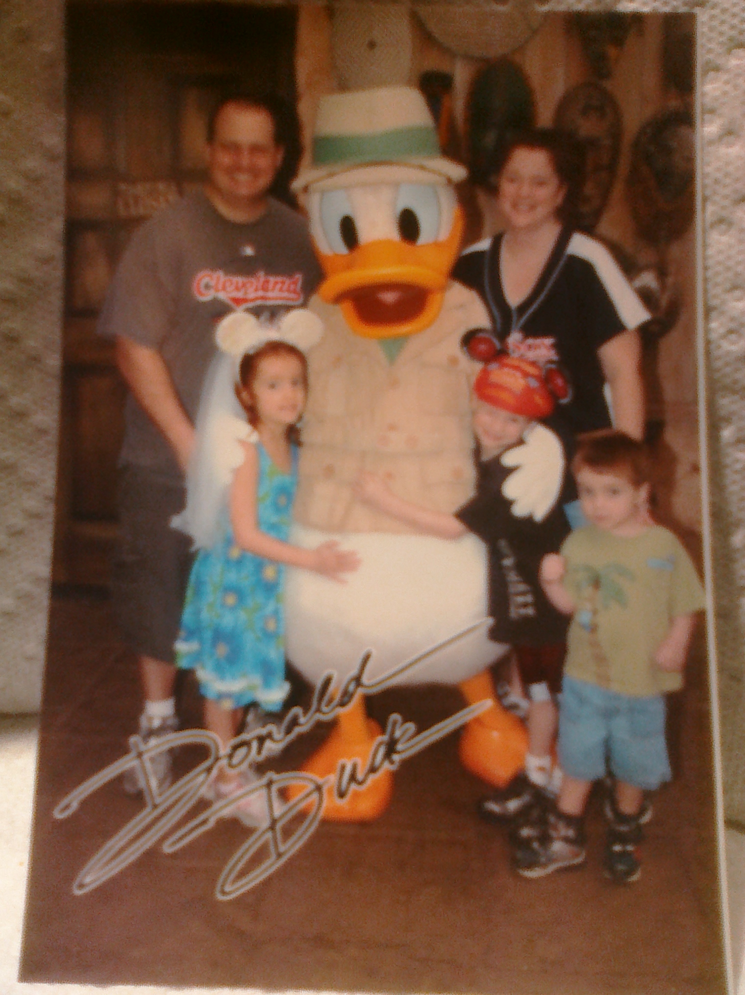 Last Monday we had breakfast with Donald and friends. This is the professional photo they took of us. (He was so popular, you had to wait in line to get your picture with Donald *before* going in for breakfast…and only his friends made the rounds while we were eating.)