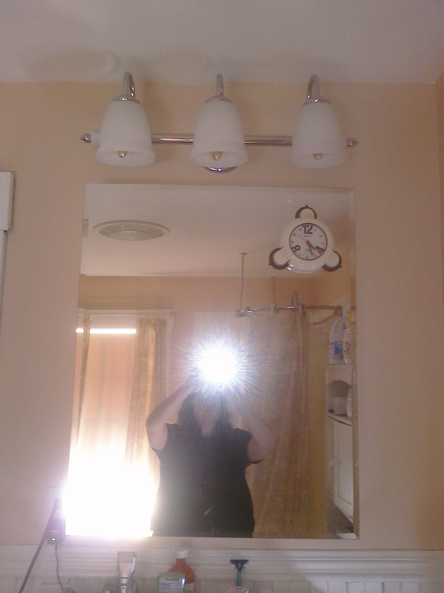 And the vanity lights – oh my! I’m having a love/hate relationship with them š On one hand – it’s SO NICE to actually see my face in the mirror. On the other hand – My oh my the gray hair I’m now seeing!!