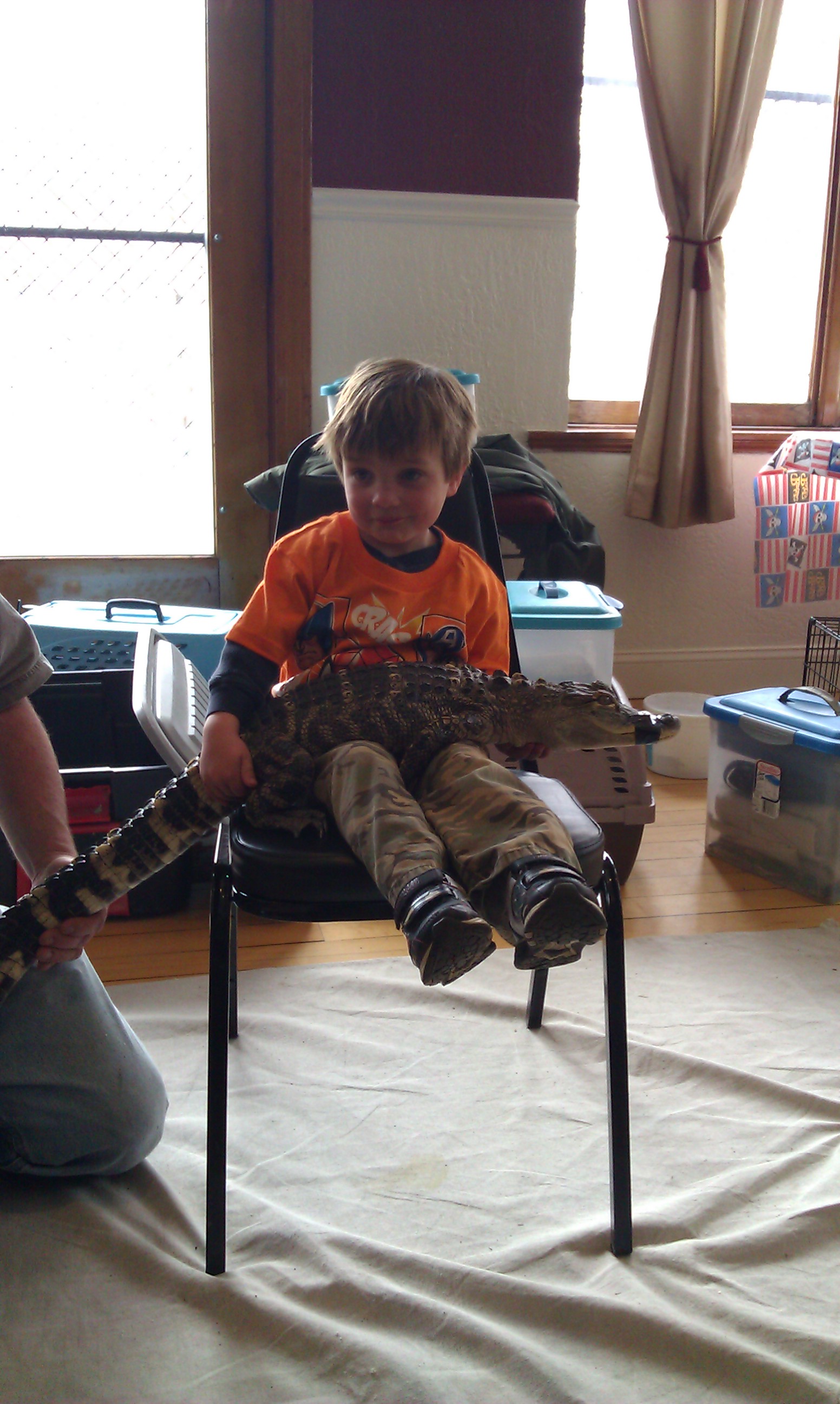 I’m so proud of him! He was so shy around the animals that time at the library. And those were just little critters, never mind a gator!