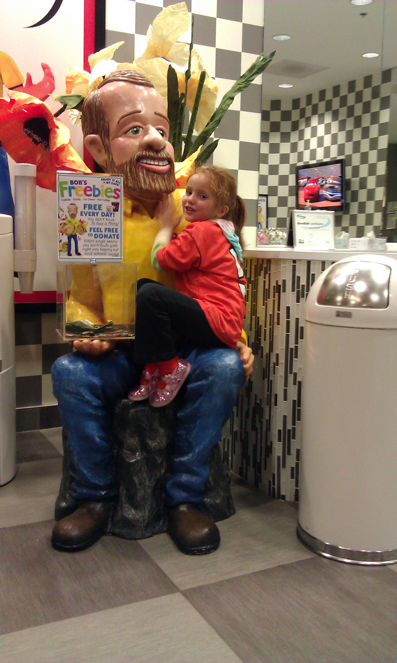 Maggie is super happy because we just bought a bedroom set for her from this "guy" (Bob’s Discount Furniture).