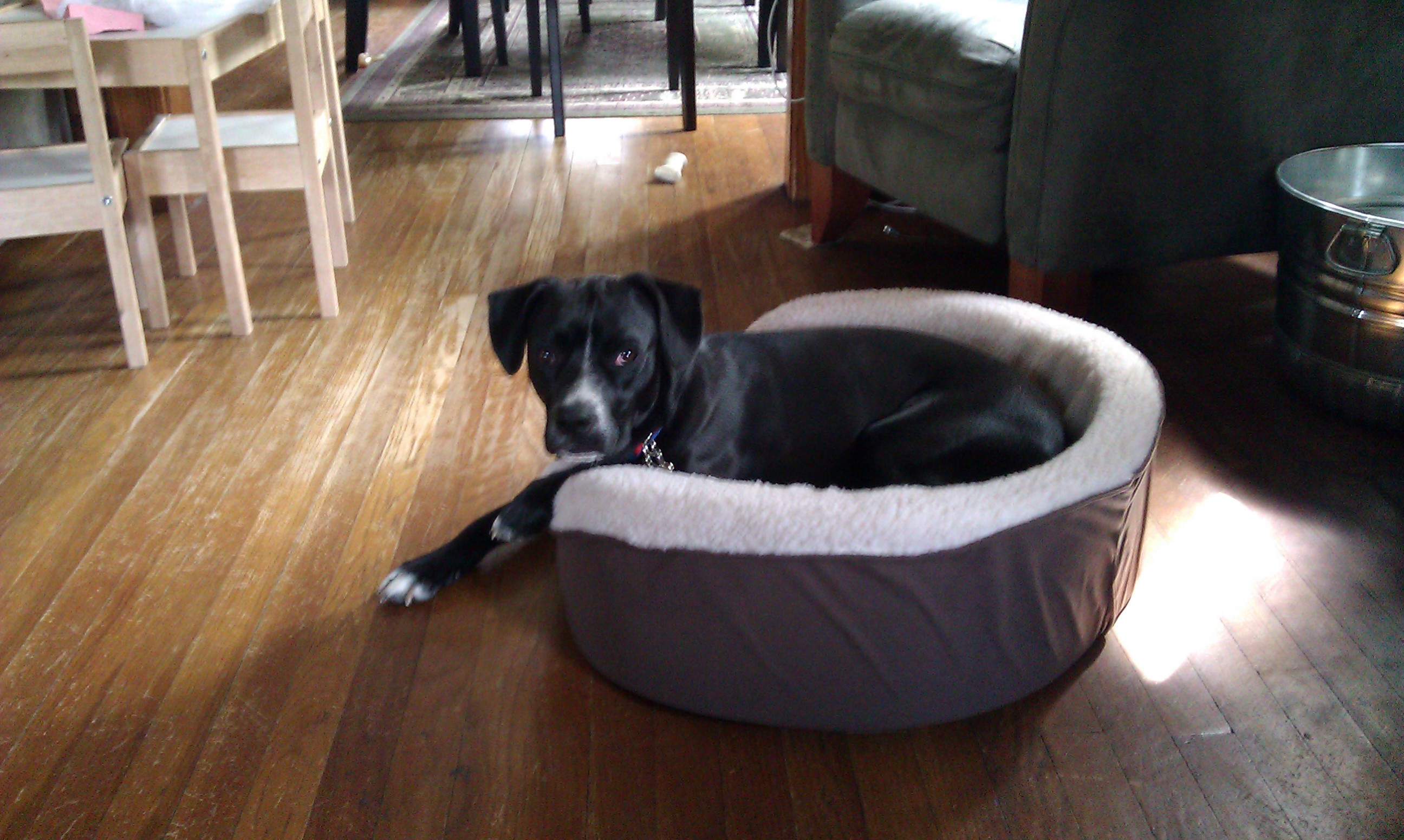 Higgins got a new bed! Let’s hope he doesn’t tear *this* one apart.