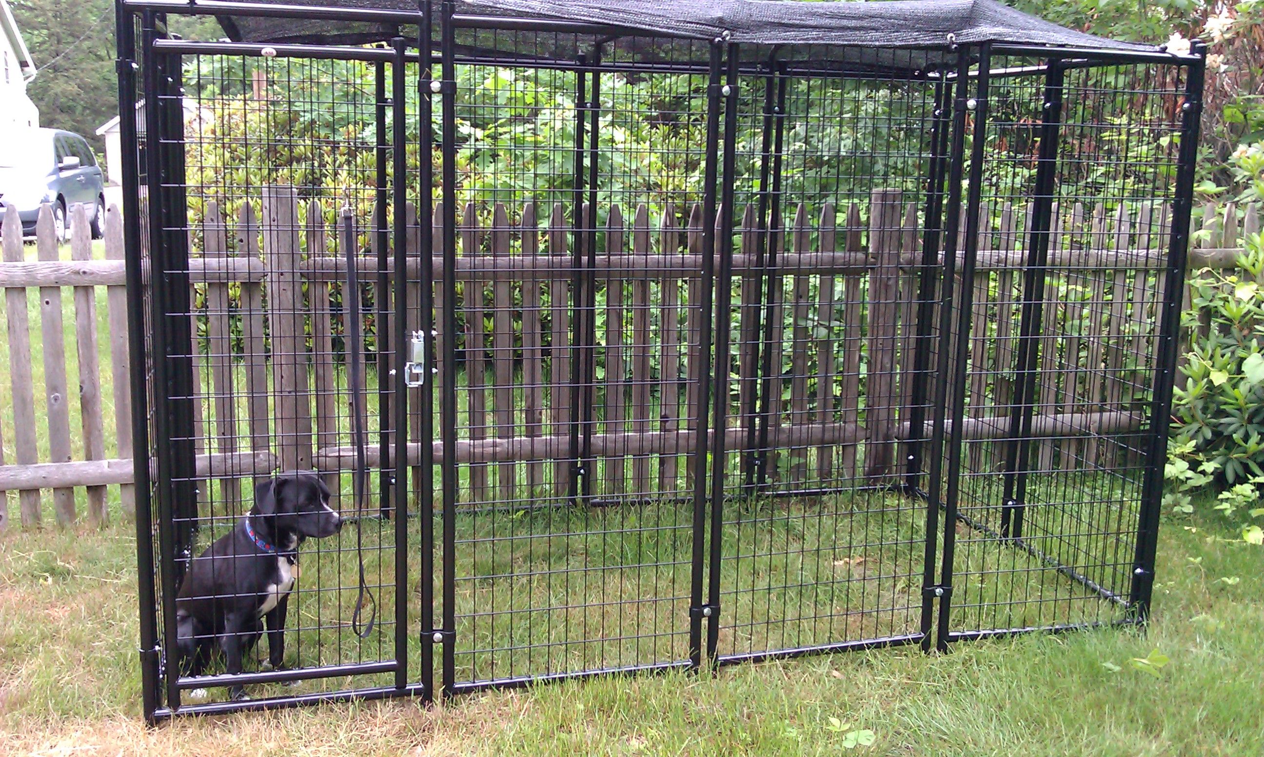 Mike put together the new dog kennel today! It’s 5X10X6 and came with a sun shade.