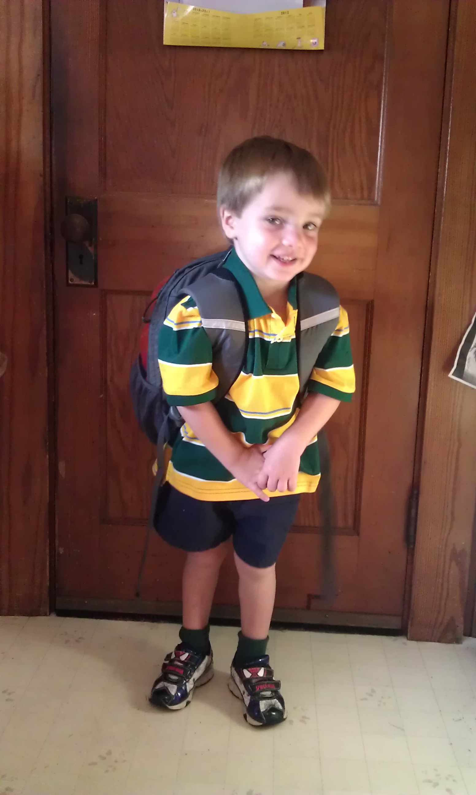 Logan started the first day of his 2nd year of preschool on the 13th.