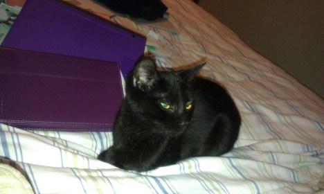 Rumor finally came out from under the bed tonight. Her sister, Jinx, is still keeping the dust bunnies company.