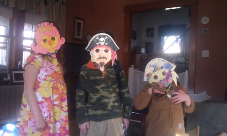 | I love the kids’ imaginations 🙂 I got masks for $1 from AC MOORE that the kids colored and then used to act out various scenes.