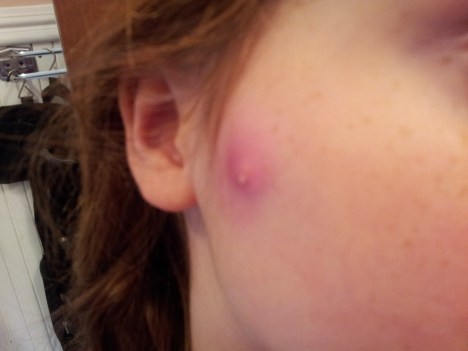 Right AFTER making the appointment to remove it, the thing exploded! So, so gross. And painful for poor miss Maggie. She can’t wait to get rid of it…but is a bit afraid of the stitches she’ll have. Keep her in your thoughts on the 7th! |