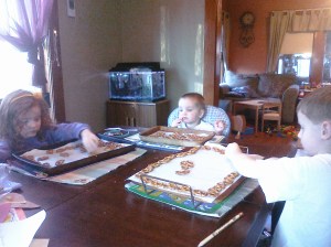 Maggie liked putting them on up-side-down. Not sure why… 🙂 After a few tries, Logan would chant “No eat.” each time I handed him an unwrapped Rolo.