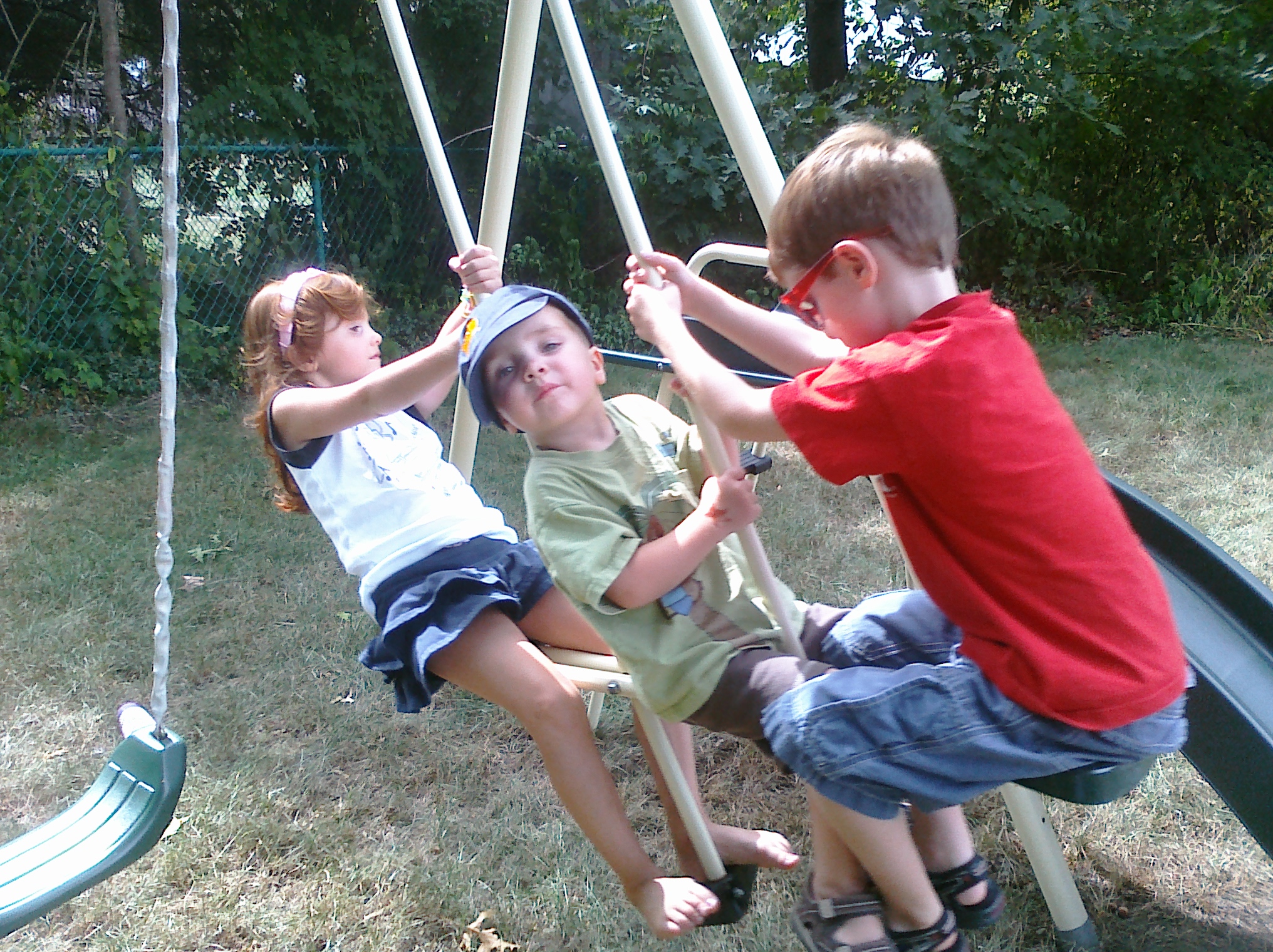 We had 48 people here. Yes. *48*!! In all honesty, since it was all in the back yard, it really didn’t seem all that crowded. And since they’re all my friends, everyone got along fantastically! (I have to admit…I was a bit worried since it was people from all areas of my life!) The kids were all fantastic. The older ones were entertaining the littler ones – and actually enjoying it 🙂 At one point, I believe Logan had all of the 6 year olds held “hostage” up in the tree house with his tiny little water gun. that was empty. LOL!! That kid. 🙂