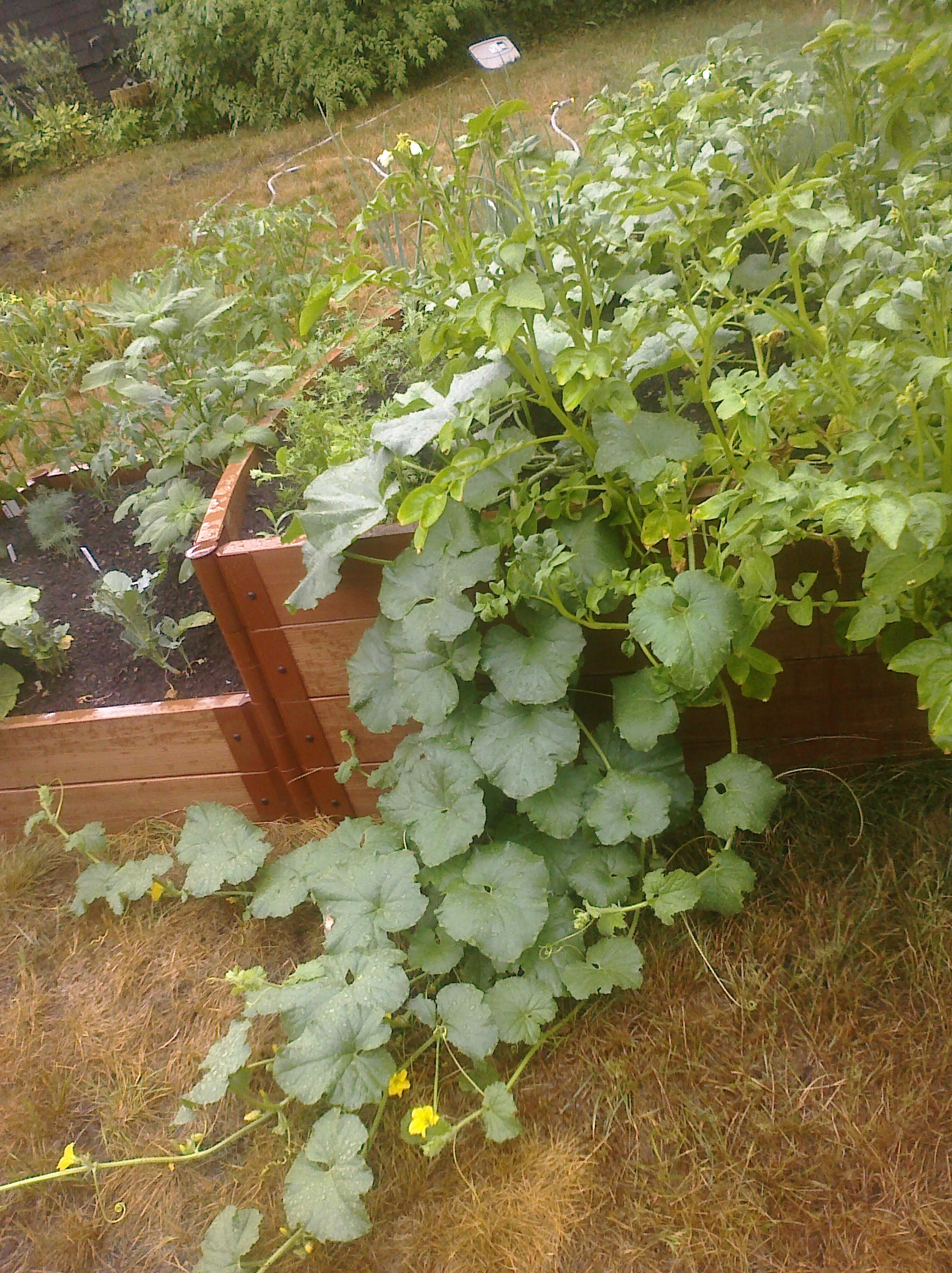 We put our second garden in! Square Foot style: Artichokes, Asparagus, Onions, Potatoes, Carrots, Cucumbers, Cantaloupe, Melon, Peas, Green Beans, Yellow Beans, Lima Beans, Brussels Sprouts, Strawberries, Peppers, Tomatoes, Broccoli, Dill, Sage, Thyme, and Basil. *phew* (The frame is by Frame It All)
