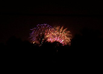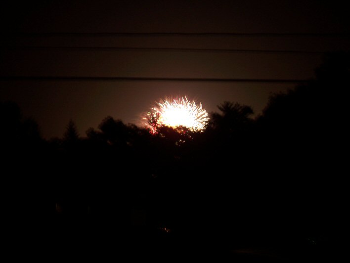 The festivities in town are less than two miles away at the local high school. Therefore, Mike and I put the kids to bed, had some dinner and then stepped out onto our front steps to watch the fireworks. My (cool) camera has a “Fireworks” setting! This is the first time I’ve used it…not *the* best pictures, but the following were taken from our steps last night.