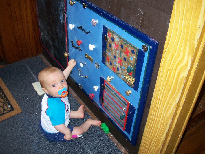 One last picture…Logan is playing with the BoredBoard Mike made for the twins a few years ago.