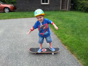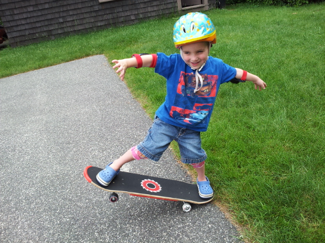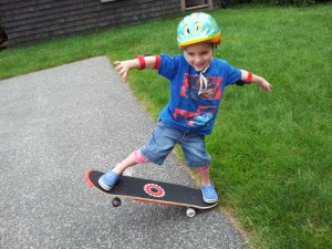 Logan has been begging for a skateboard. I’ve been dead set against it because…well…I’d rather he be in a bubble. BUT, I know that can’t happen. And since he pretty much kicks butt without training wheels on his bike – I figured he could probably handle the skateboard.