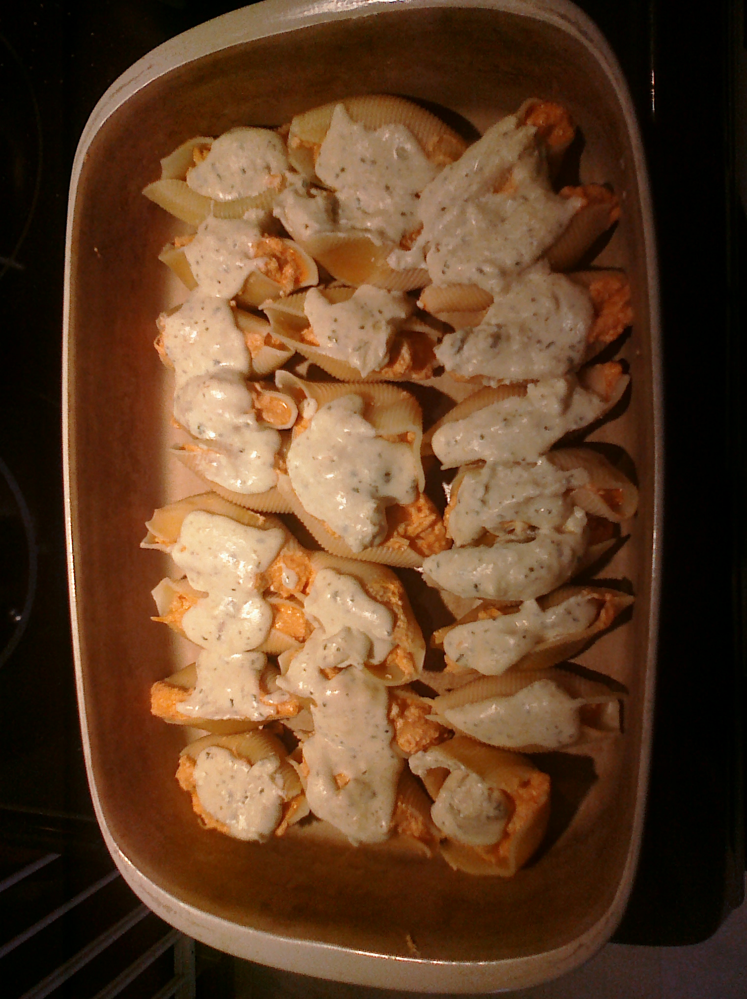 Filed under: MMM, recipes | Tagged: Buffalo chicken, Buffalo Chicken Stuffed Shells, Creamy Ranch Sauce, stuffed shells, Synchronized cooking | 5 Comments »