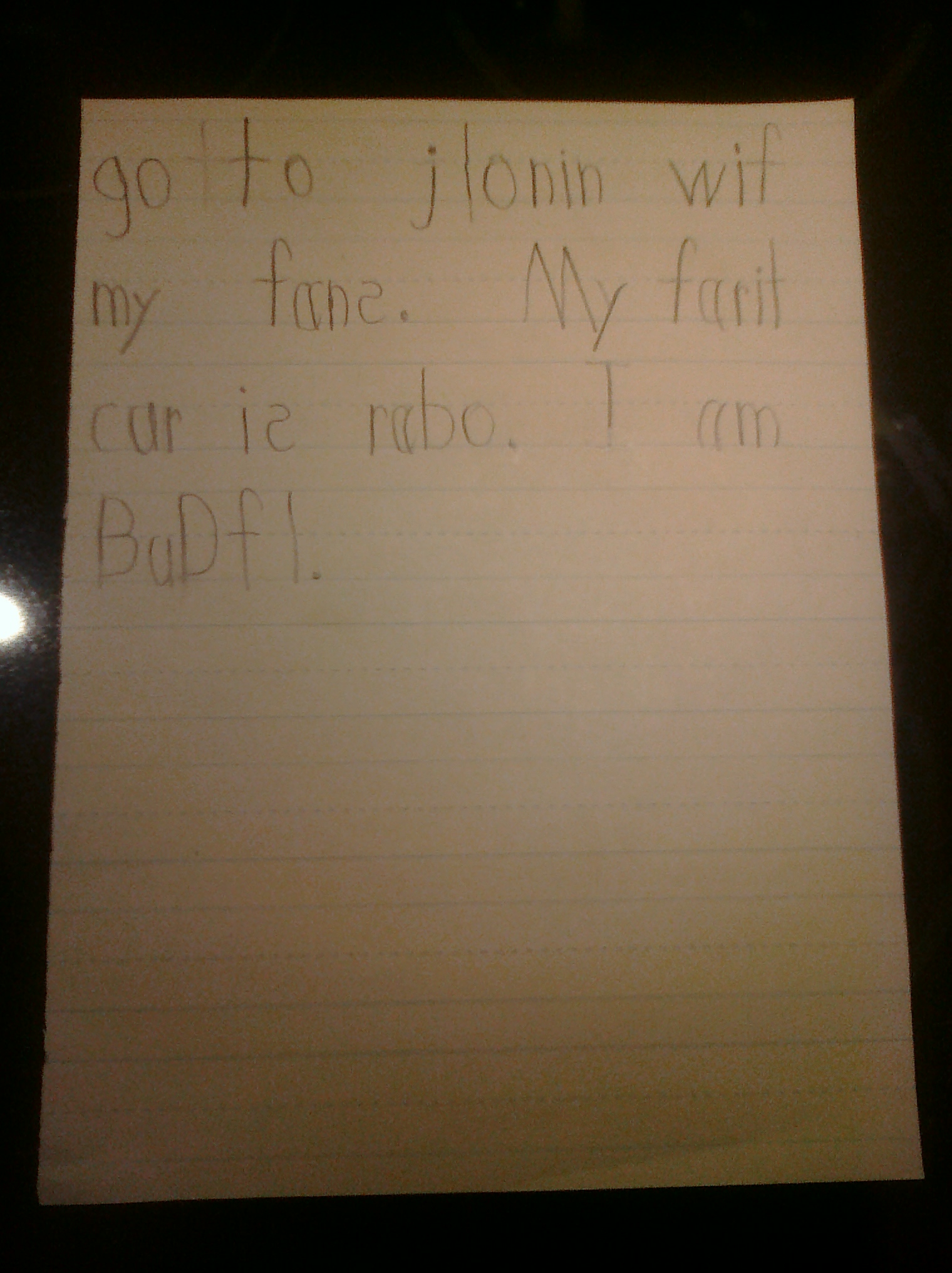 I did take a picture of the paper Burke’s teacher gave to me though. *grin*
