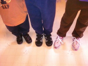 It took 2 stores to do it, but all three kids now have shoes that fit! Maggie is going to need to learn to tie her shoes…I’m a little afraid 😉