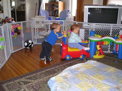 This was a favorite pass-time of Burke and Maggie’s … and it turned out well: Burke LOVED pushing, and Maggie LOVED riding. This picture was taken on March 11, 2006. The kids were just over a year old.