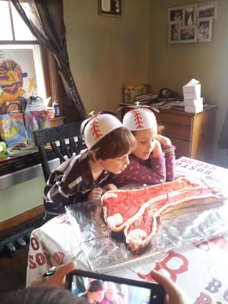 | My Dad made a Red Sox socks cake for Burke and Maggie’s birthday 🙂 |