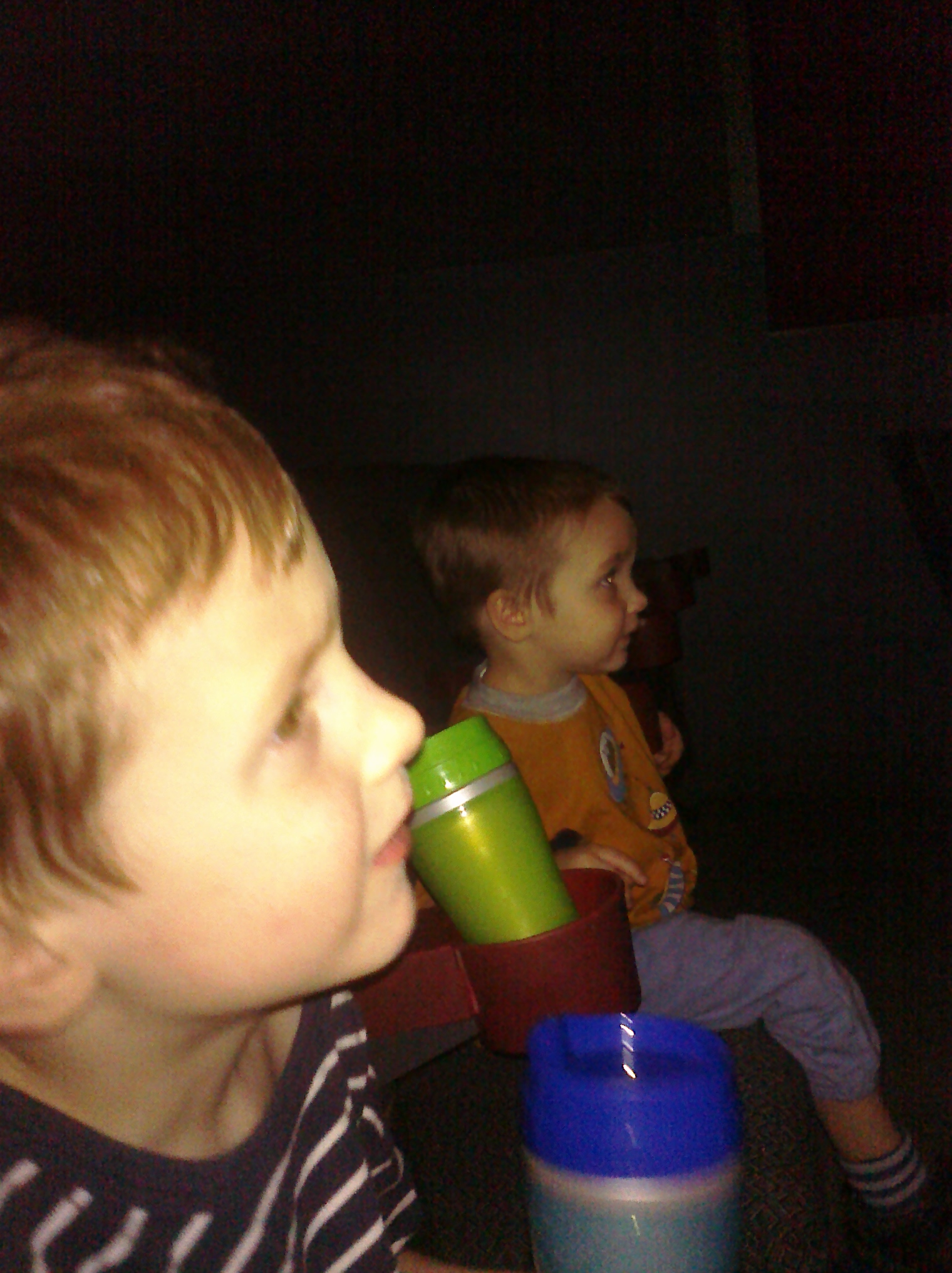 (Don’t let the pictures fool you – Logan was in my lap the entire time. I took these while the previews were showing.)