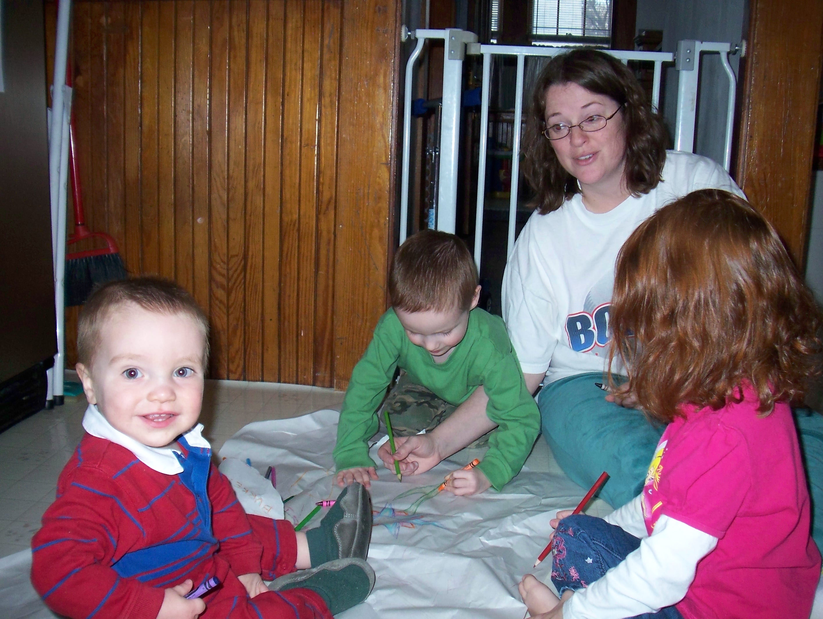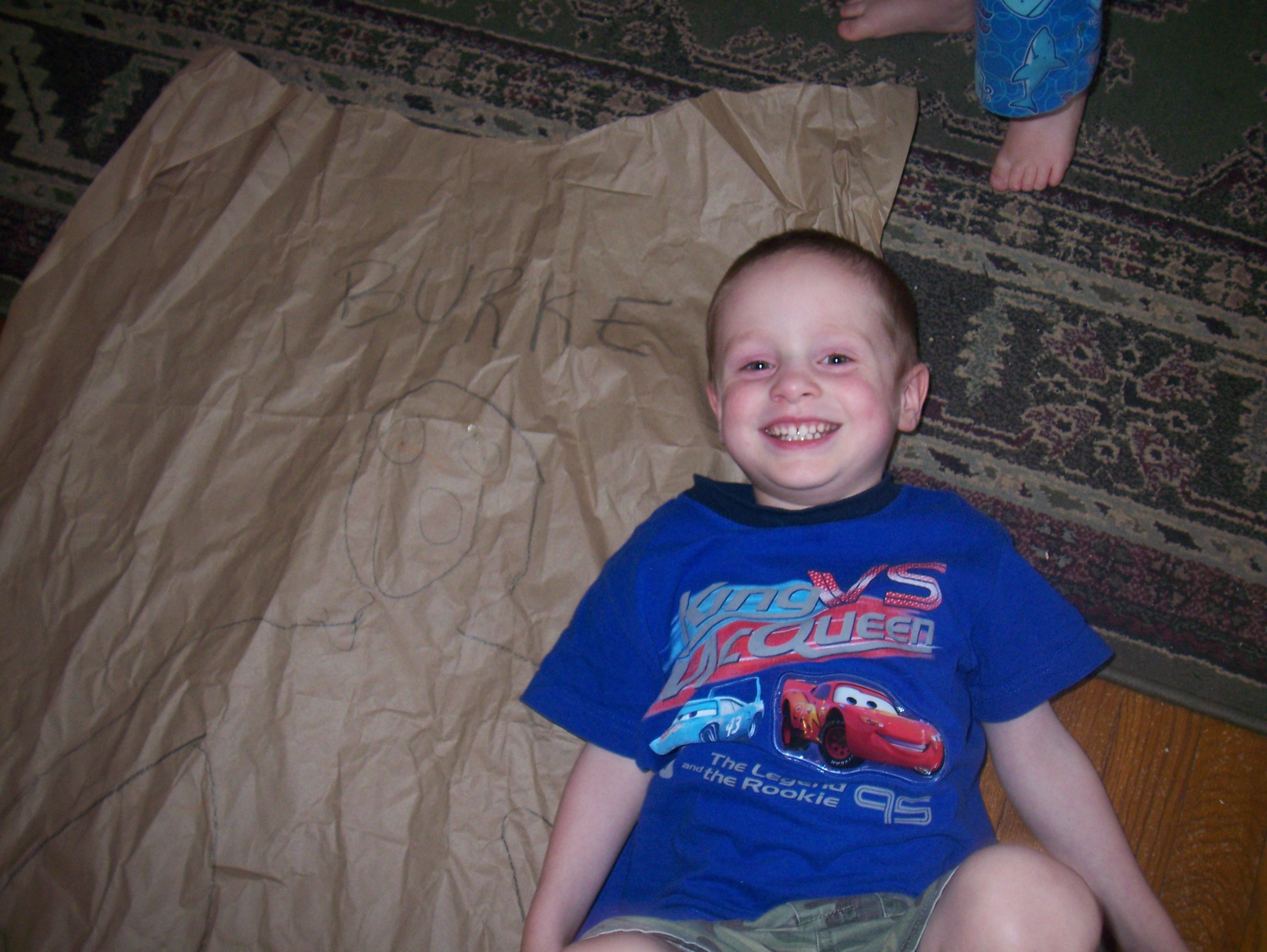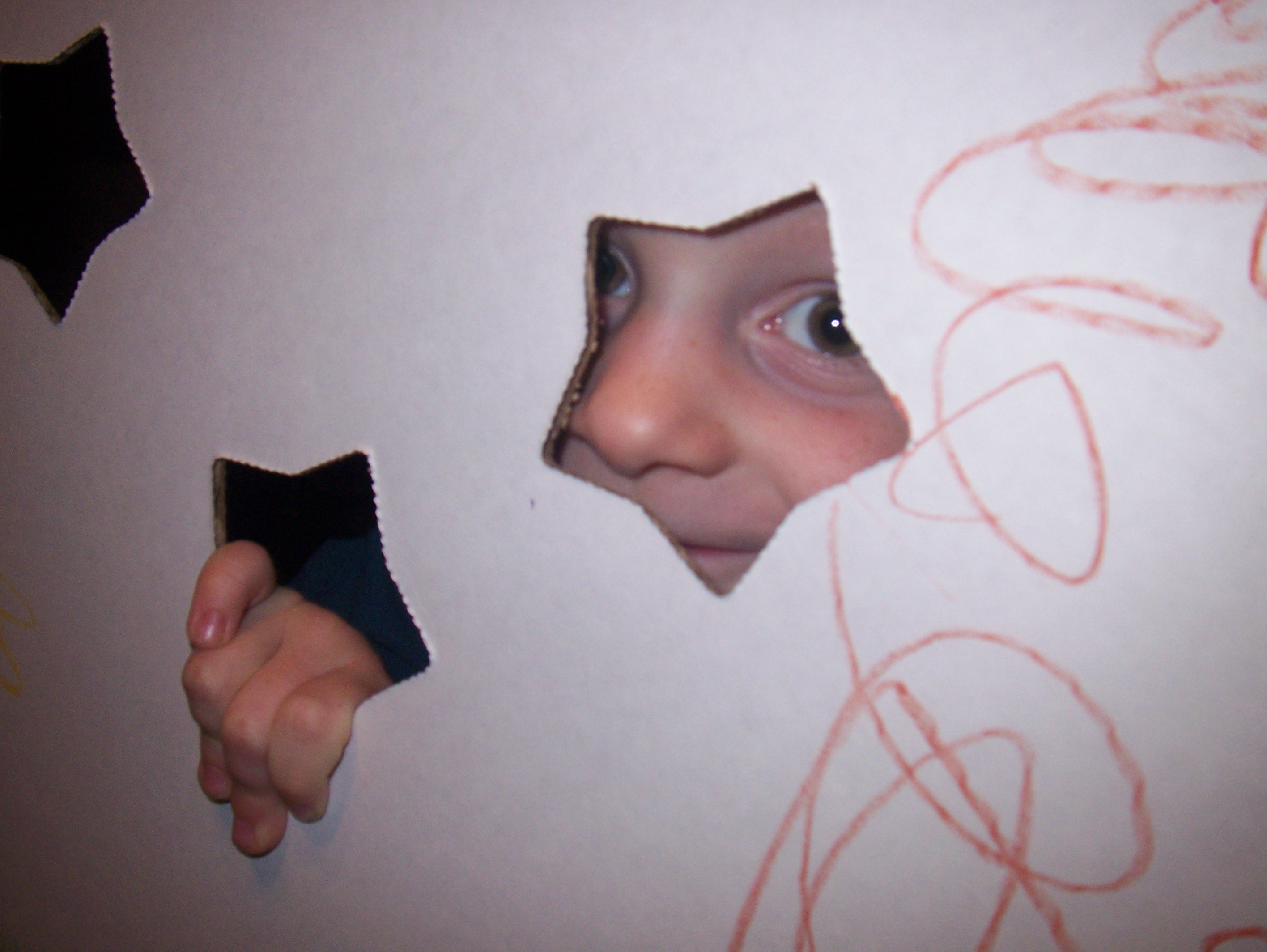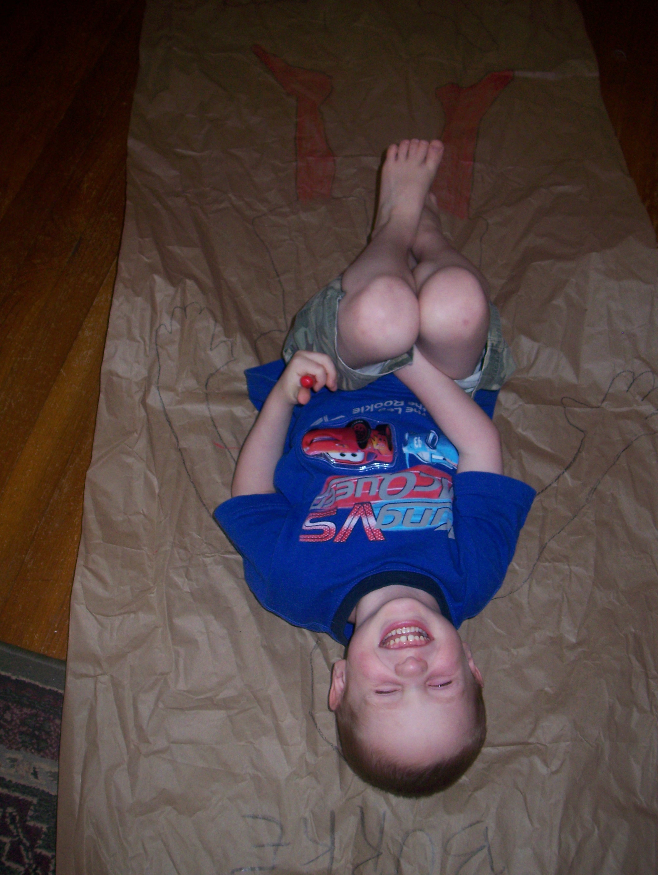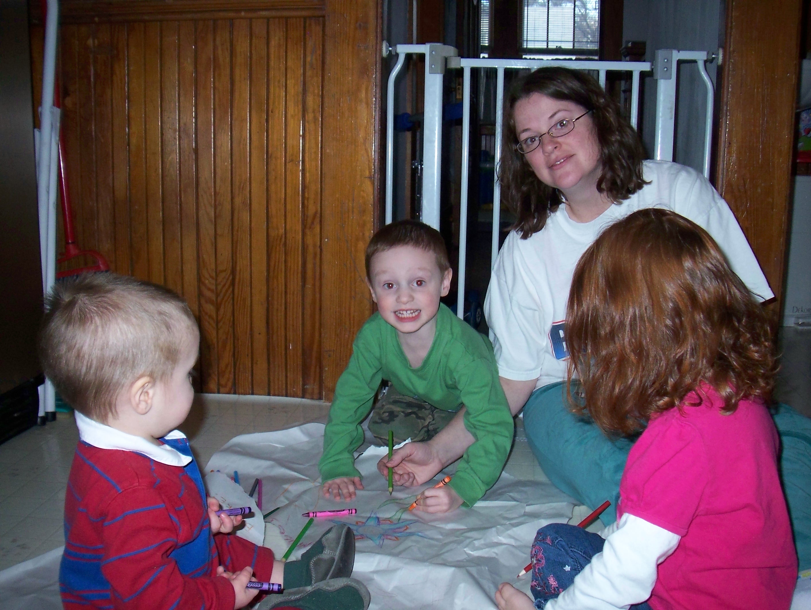 These pictures were taken on Monday. I’d just gotten a package (the contents of my Giveaway!) that was secured with long, crumpled pieces of packing paper. We had much fun decorating them.