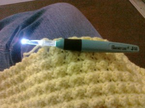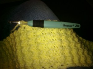 I tend to crochet in spurts. And those spurts tend to happen around when I need to finish up a project before giving it to someone (like a baby blanket). The spurts also usually happen in the car when we head to Vermont or while I’m watching TV after the kids have gone to bed.