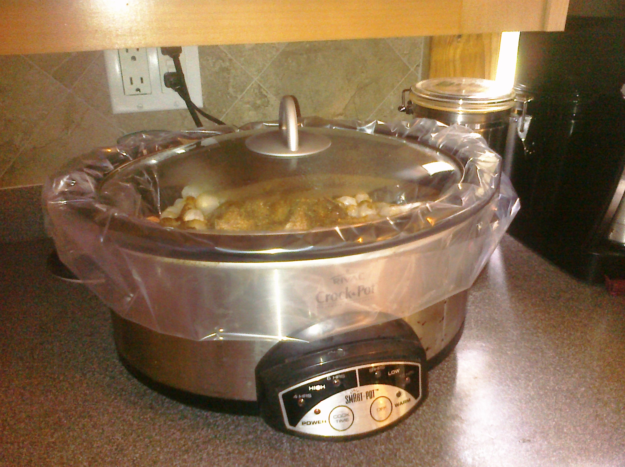 Oh, and that plastic you see? Crock Pot liners. Easy clean up and helps make the lid fit better (no more crock pot spitting!) Just another thing to Make my Monday π