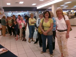 And the Swag Bags were such a hit that one woman begged for one for a “friend who is parking the car.” We told her that there were plenty and that when her friend got there, she could register for one herself. About 1/2 hour later, she was witnessed taking one of the bags that was behind the table! WHO DOES THAT?! We chatted quickly amongst ourselves and decided that we should go after her. Katie stepped up and got the bag back (explaining that the bags were meant to be one per person. GO Katie!!) Crazy night. But what a blast 🙂