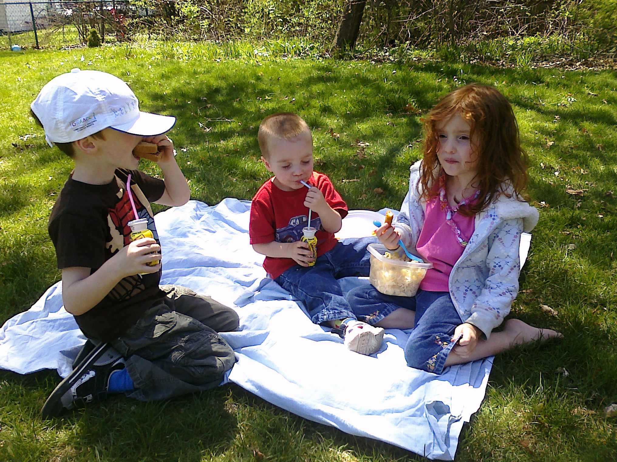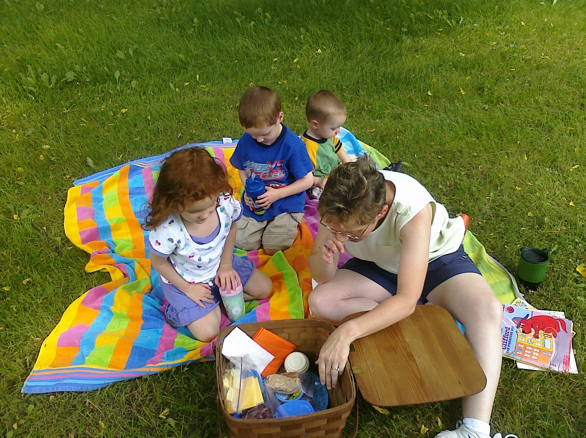We had a BLAST having a picnic on the blanket (that rolls up nicely for easy carrying). We haven’t used the cooler yet, but that’s because we’ve only been picnicking in the back yard so far…but it’s really well made and I can’t wait to put it to good use. (I can see this being handy on trips back from the grocery store on very hot days…)