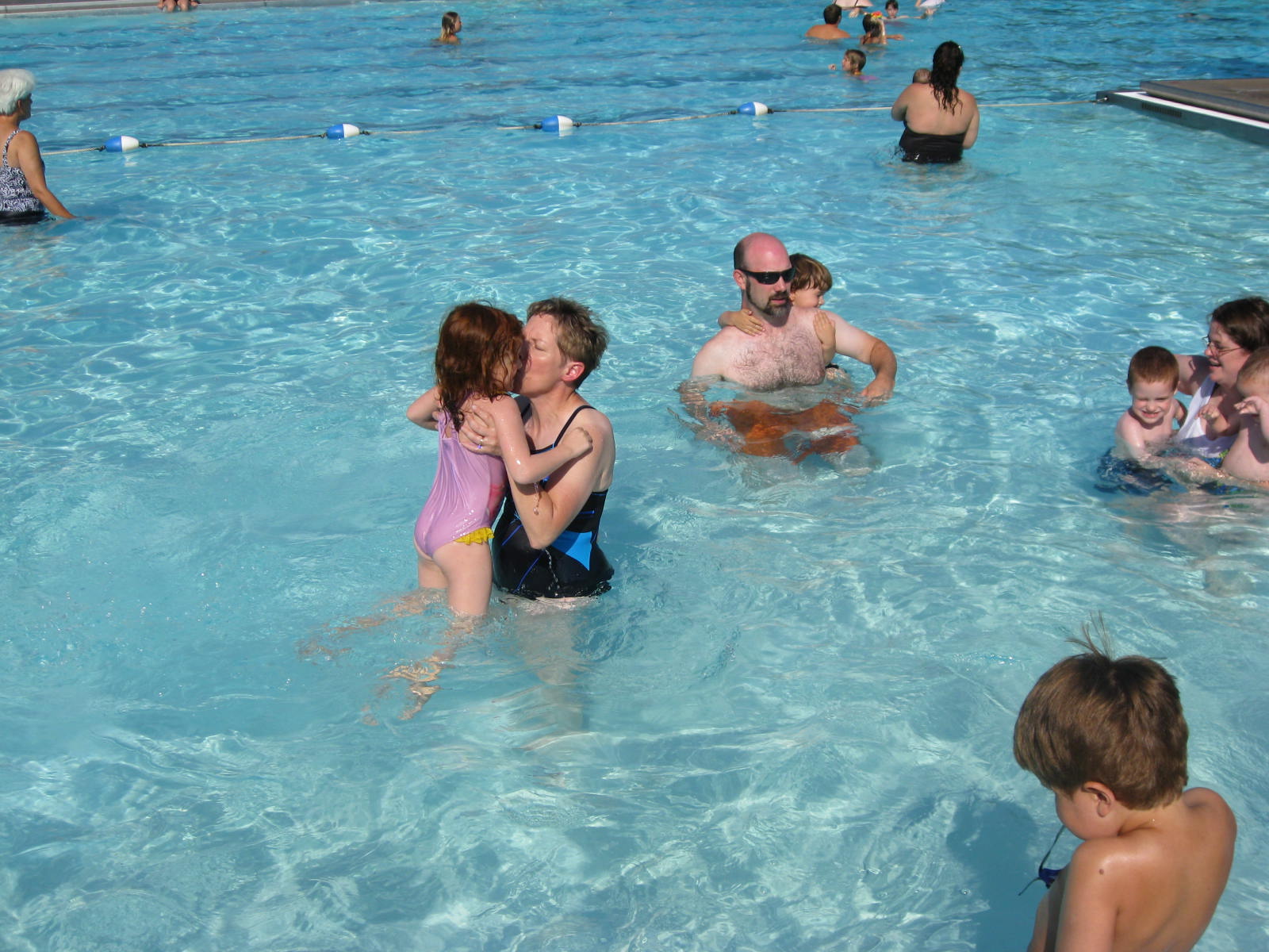 While up in Vermont, we took the kids swimming. They had only been in the “little” kiddie pool in our back yard before…never a big pool or a lake or anything else. They LOVED it all. (I shouldn’t be surprised – I spent all of my childhood summers in the town pool or Lake Champlain.)