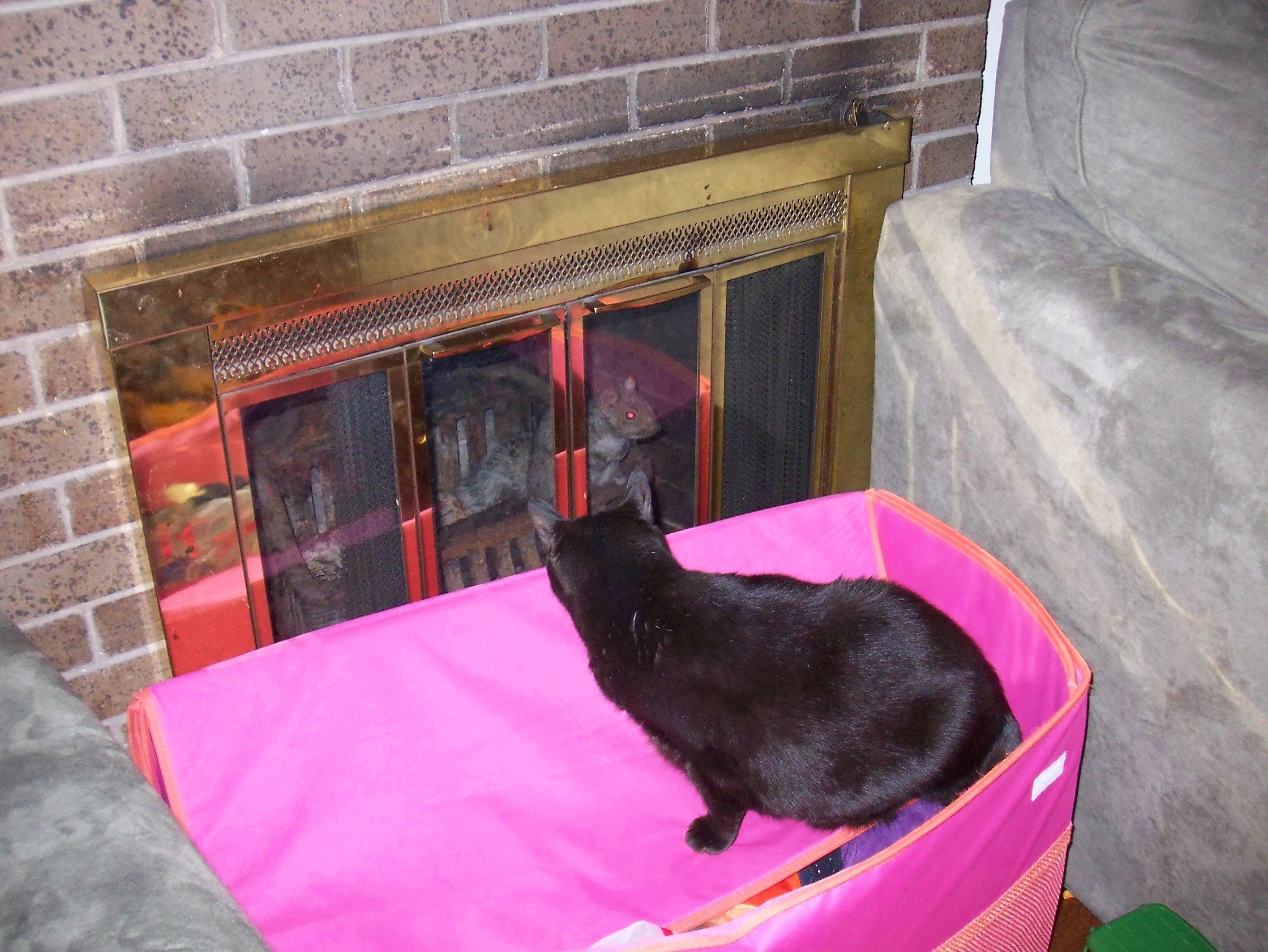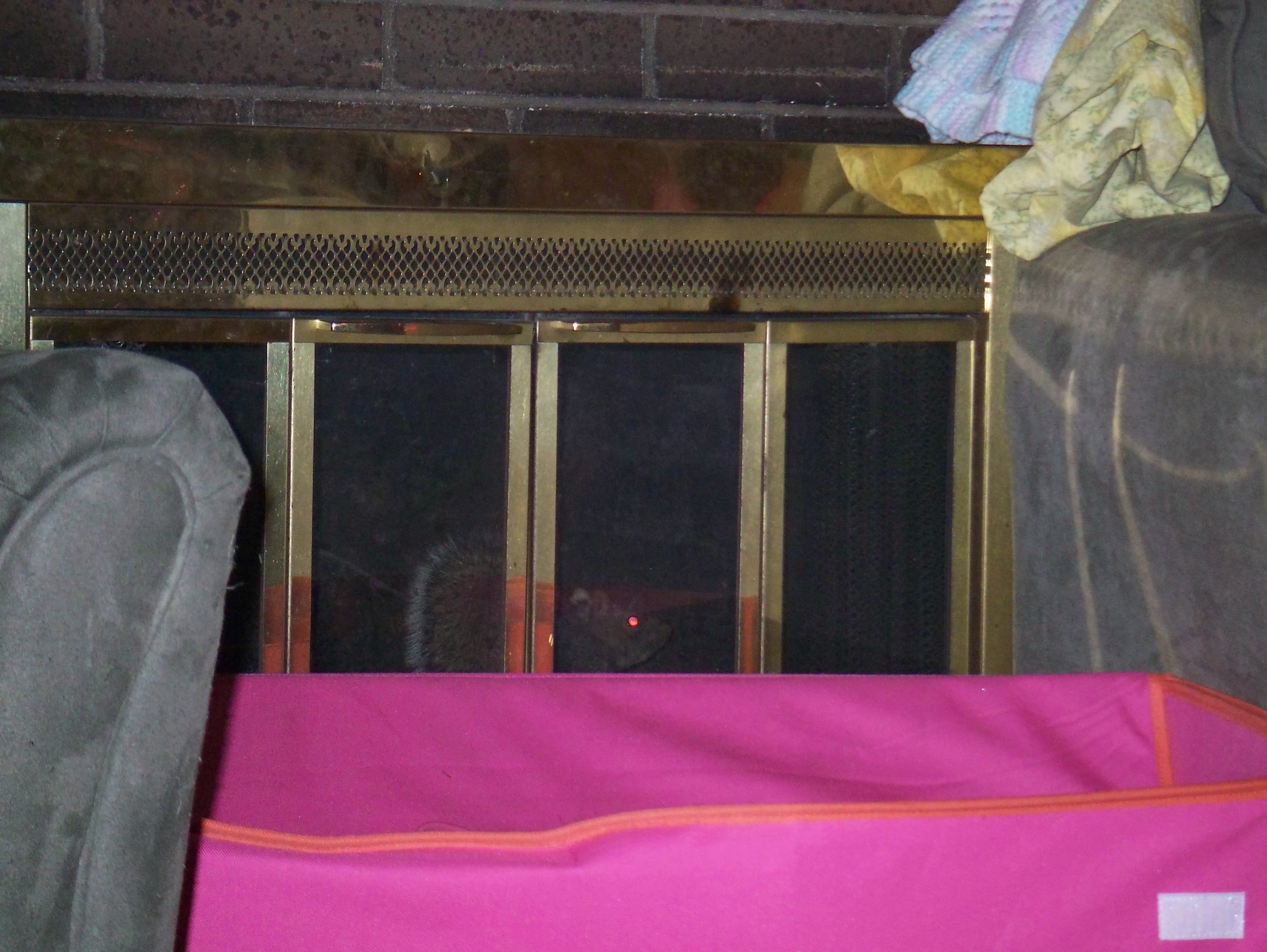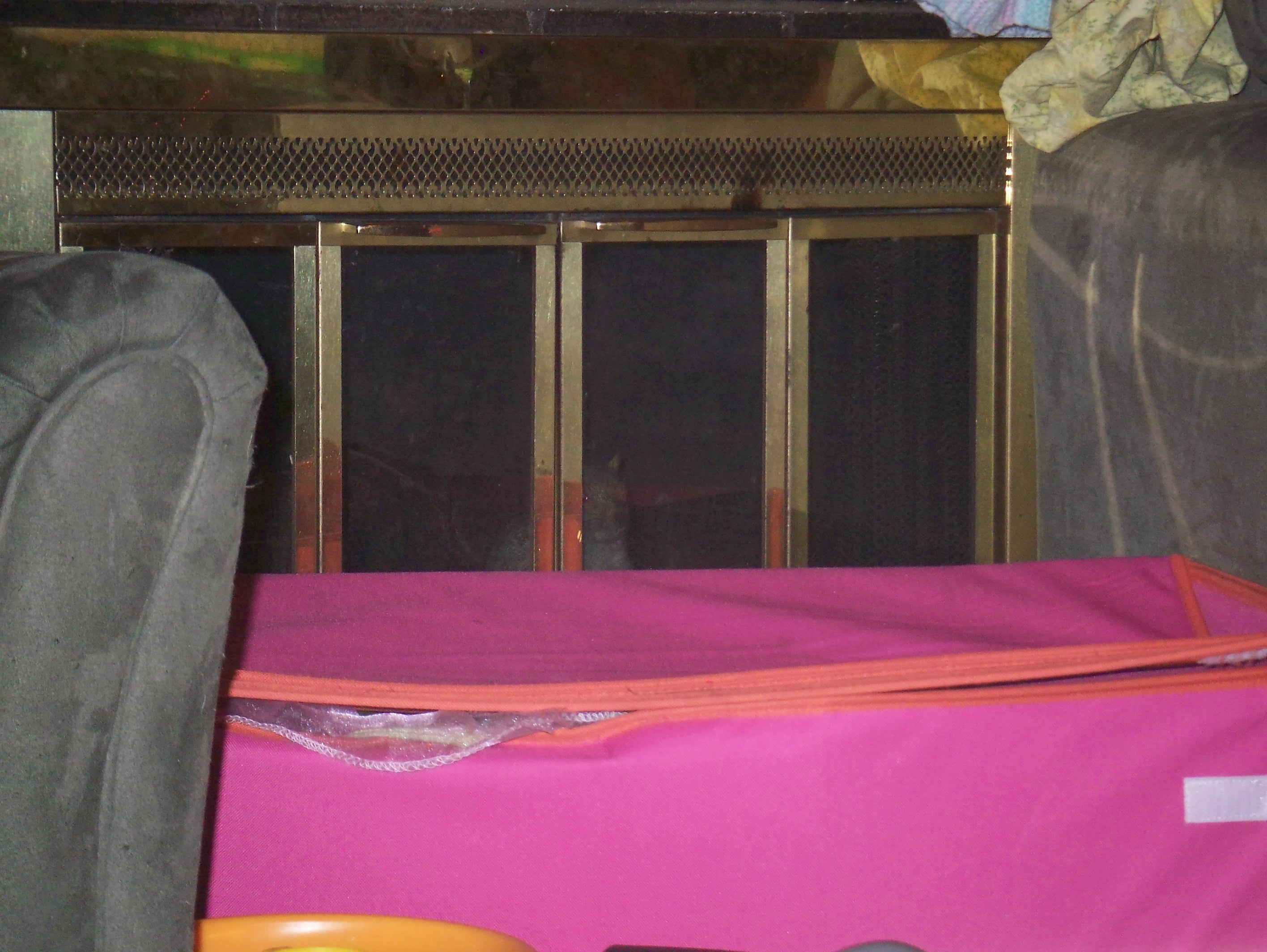 First…the squirrel is gone! We finally realized that he wasn’t really coming and going as we thought. When he was “gone” he was just up the chimney a bit out of our sight. Which means that the poor thing hadn’t eaten a thing since at least Monday. So we got a box and a stick and tried to shoo him out of the fire place. I think he had totally given up by that time (he went crazy a few hours before, but was just hunkered down in the corner by this time). Lucky for us, he was sluggish – cuz he didn’t quite make it into the box. He lumbered around the living room and into the kitchen before Mike cornered him in the bathroom. We set him free and he ran off, but I don’t know if it was too late by then. I hope he’s okay – and I hope he learned his lesson and will leave the chimney alone now! (I checked today, the cap on it is loose – we’ll have to fix that soon!!)
