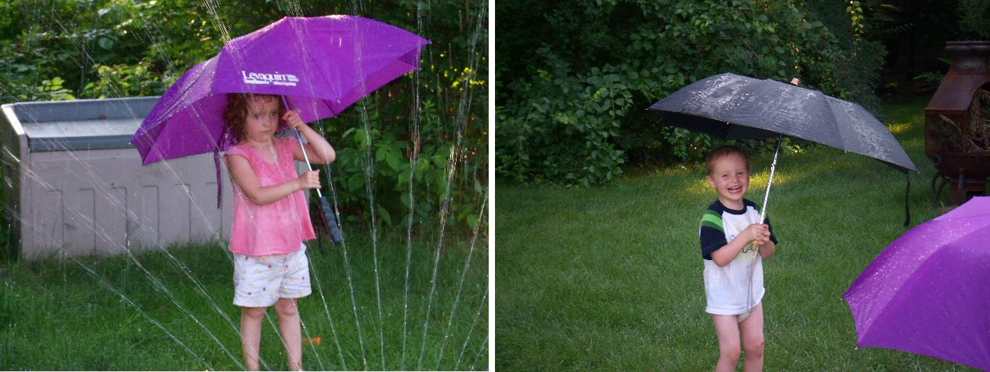 Oh ya, and they were playing with their “Cinderellas” in the sprinklers yesterday: