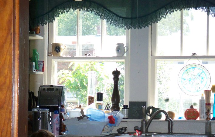 As we were sitting down at lunch today, Maggie pointed into the kitchen and very excitedly exclaimed “A CLUE! A CLUE!!” Blue’s Clues is one of her favorite shows, so she pretends to see clues all the time…we usually play along and have a grand time, but this time she was more adamant than others. This is her view: