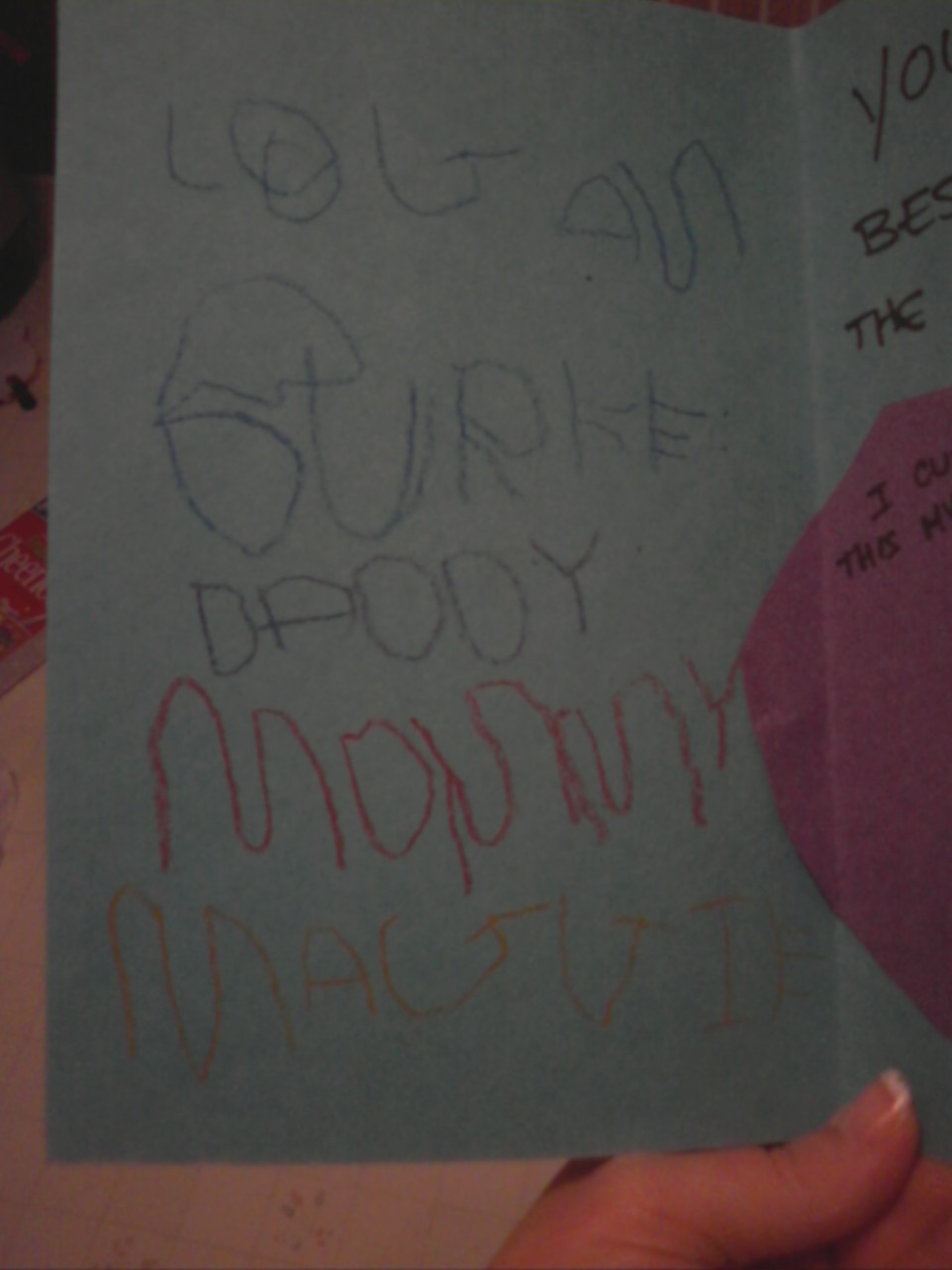He ended up writing out everyone’s name on Daddy’s card.
