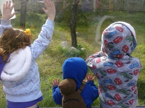 Aunt Cathy, Logan, Burke, & Maggie: "Here kitty, kitty, kitty, kitty!"