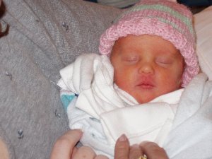 Maggie entered the world weighing 4lbs 9oz, measuring 17 inches long, at 5:57pm. And she literally squeaked when she arrived.